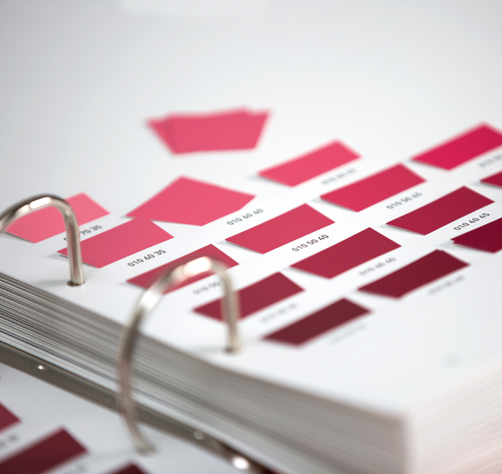 Die Einzelblätter im DIN A6 Format sind bestens für die Entwicklung von Kollektionen geeignet. Da sie problemlos zu Werbeagenturen, Architekten oder Produktdesignern mitgenommen werden können, ist es einfach, sich direkt vor Ort für eine Farbe zu entscheiden bzw. zu sehen, ob die Farbe zum Raum oder Projekt passt.